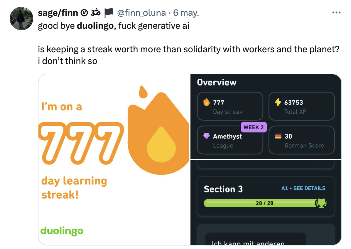 Ya son muchos los que han expresado que terminarían sus rachas (y todos sabemos lo que cuesta mantenerlas 😢) y se desinstalarían la aplicación. Pero no solo eso, sino que algunos ya han comenzado a buscar aplicaciones similares que no tengan este enfoque “AI-First”.